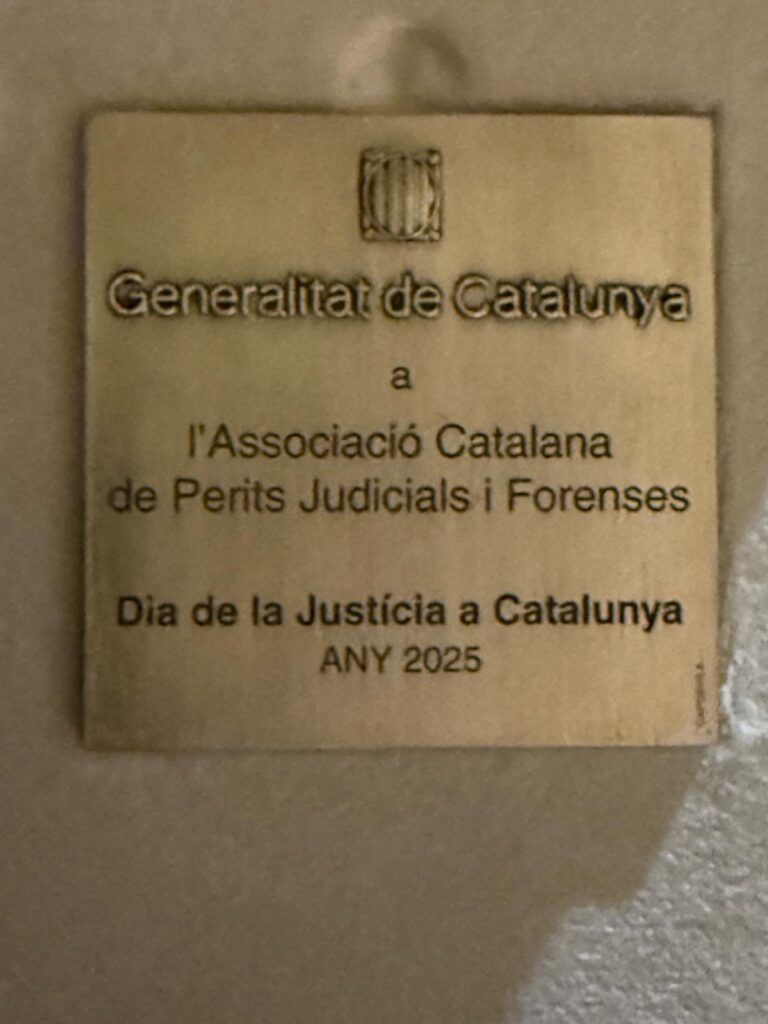 Dins la celebració del Dia de la Justícia 2025, el Departament de Justícia i Qualitat Democràtica (DJQD) de la Generalitat de Catalunya va atorgar el passat 24 de novembre a l’Associació Catalana de Perits Judicials la medalla d’honor de la Generalitat de Catalunya pels serveis excepcionals a la Justícia.
